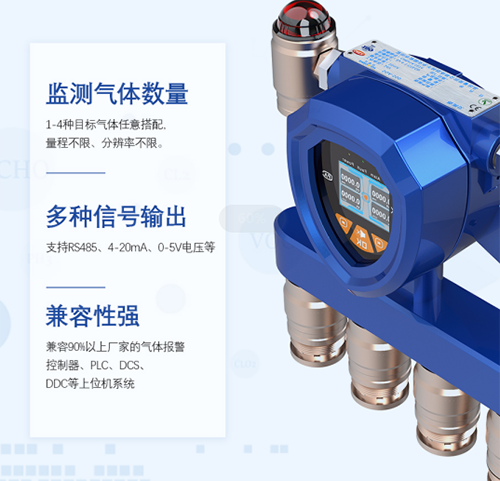 這款固定多合一甲肼氣體檢測報警儀支持擴展6個檢測探頭裝置,也就是能夠同時檢測6種目標氣體,可靈活選配探頭類型,如二合一、三合一、四合一、五合一等規(guī)格,有特殊要求的話,也可以增配選擇溫濕度、PM2.5、PM10粉塵顆粒物等參數(shù)指標。