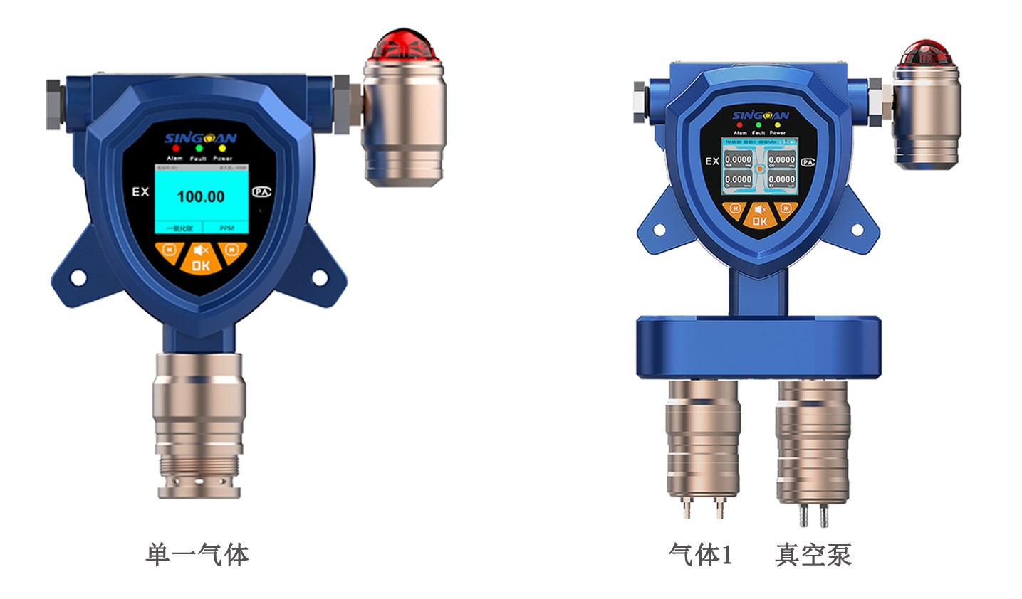 SGA-501系列偏二甲肼氣體檢測儀除基本的氣體檢測、聲光報警、繼電器輸出聯動設備功能外,還有許多行業內首創的最新技術應用;如智能校準、智能提醒、一鍵消音、數據存儲、三級報警、量程修改等功能;按照氣體數量的多少,為SGA-501系列單一氣體檢測儀、SGA-502系列二合一氣體檢測儀、SGA-503系列三合一氣體檢測儀和SGA-504系列四合一氣體檢測儀,SGA-505系列五合一氣體檢測儀,SGA-506系列六合一氣體檢測儀,具體區別請參照下面產品參數列表。