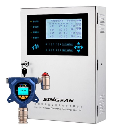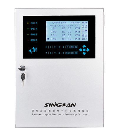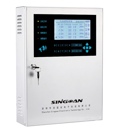 SGA-800B氣體報警控制器為本質安全型電路設計,配備防爆外箱,安全耐用;6英寸大屏幕液晶顯示屏,可實時顯示每路氣體檢測儀的編號、氣體名稱、檢測單位、實時監測值等信息;主電、備電、報警、故障指定燈,一目了然;雙重密碼保護(實物鑰匙1把+操作密碼),確保儀器安全使用;客戶可根據現場情況,自行修改高、低濃度報警點、零點校準、密碼、時間等功能;支持單路或多路檢測儀屏蔽功能;RS485通訊接口,可通過深國安專用監測軟件,實時查看、存儲各路氣體檢測儀的監控數據,并通過圖形顯現出來;還能導成EXCEL數據,進行數據再編輯、打印等。