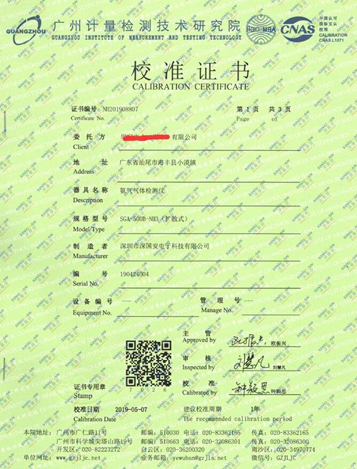 深國安電子制造的固定式氯氣檢測儀校準(zhǔn)報告產(chǎn)品質(zhì)量杠杠,出廠帶第三方專業(yè)計量院校準(zhǔn)報告證書,其氯氣檢測儀校準(zhǔn)結(jié)果:精確度:≤±3%FS ,重復(fù)性:0.3%FS,線性誤差:...