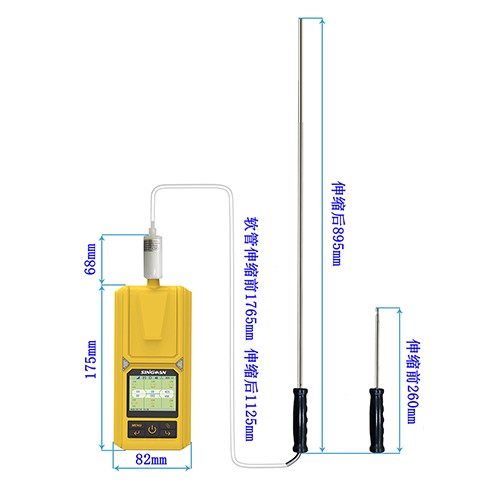 ?可伸縮探桿?:探桿式設計使得檢測儀能夠靈活調整檢測高度,適用于不同高度的氣體檢測需求。同時,探桿還可以伸縮隱藏,方便存儲和攜帶。